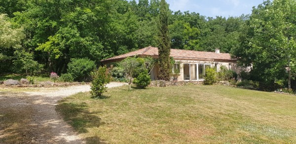 A 11km de Caylus et 2km des 1eres commodités, Habitation atypique de 138m2-avec habillage en pierre,ET charpente apparente- DE PLAIN PIED- dont: